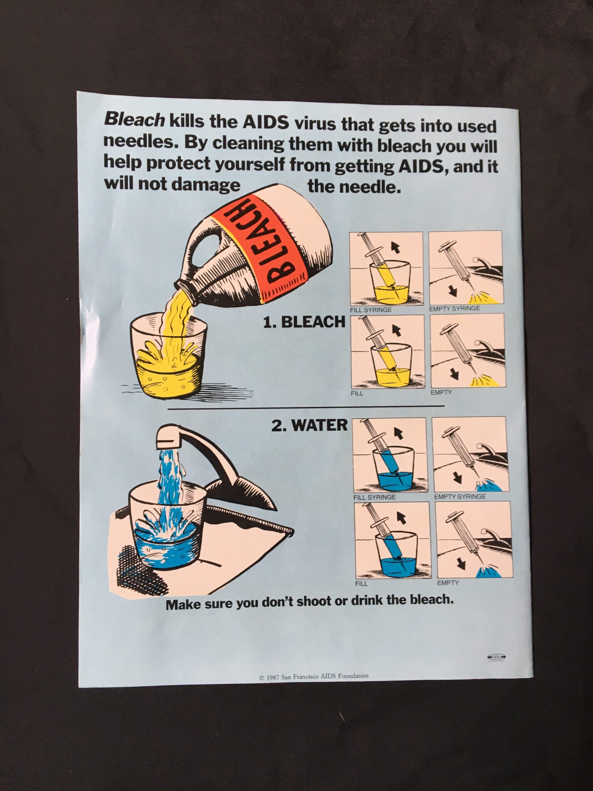 Reflecting the increased awareness of the causes and social impacts of HIV/AIDS, the comics focus on people from a variety of lifestyles, demonstrating a shift from the stigma of the epidemic as a “gay disease”. The title, a reference to a heroin shooting gallery, as well as the safe injection information provided on the back speak to the non-judgmental attitude provided throughout, evidence that these comics were meant to be read by and to educate all kinds of at-risk individuals in the Bay Area whether gay, straight, black, white, or drug user. Highlighting the work of a number of local illustrators and comic artists (as well as a number of borderline pornographic panels), this stated “adults only” publication is not your typical public health propaganda.