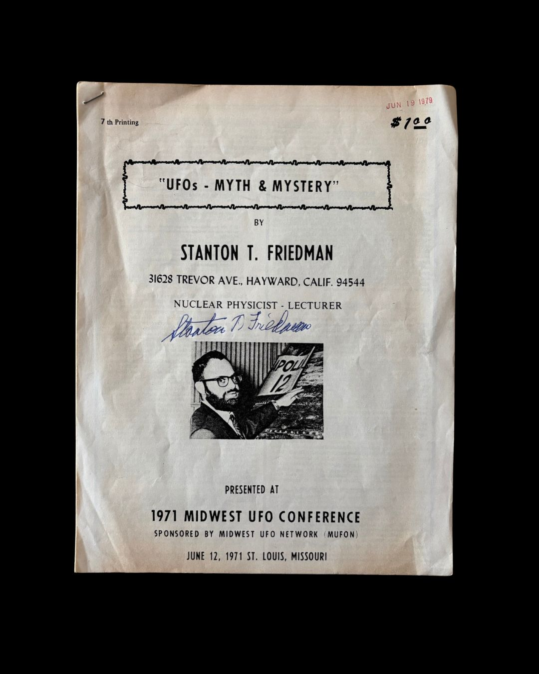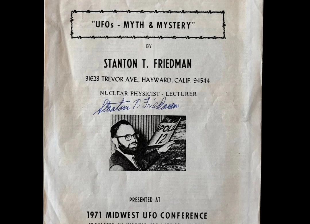 Signed Early Lecture “UFOs Myth & Mystery” by Famed Physicist Turned UFO Researcher Stanton T Friedman